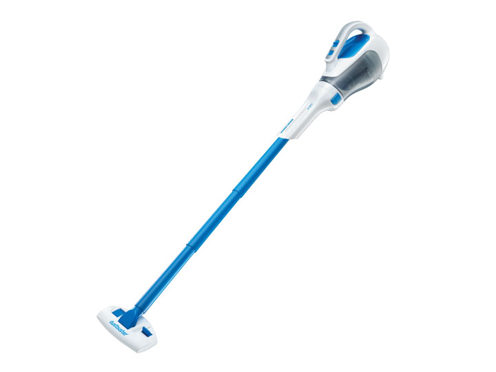 Akumulatorski ročni sesalnik DV7210NF Dustbuster je primeren za enostavno domače čiščenje. Njegova tanka oblika omogoča čiščenje vseh težko dostopnih predelov s ciklonskim, dvostopenjskim sistemom filtriranja. Brezžična tehnologija omogoča enostavno uporabo. Ima integriran raztegljiv ozki nastavek, mehko krtačo, 360 napajalni podstavek in LED indikator polnjenja. Lastnosti: – barva: modra – bela – napetost: 7,2 V – moč sesanja: 14 AW oz. 290 mm / H2O – posoda za prah: 610 mL – tip baterije: NiMH (6 celic) – čas delovanja: ca. 10 min – dodan je podaljšek za sesanje talnih površin