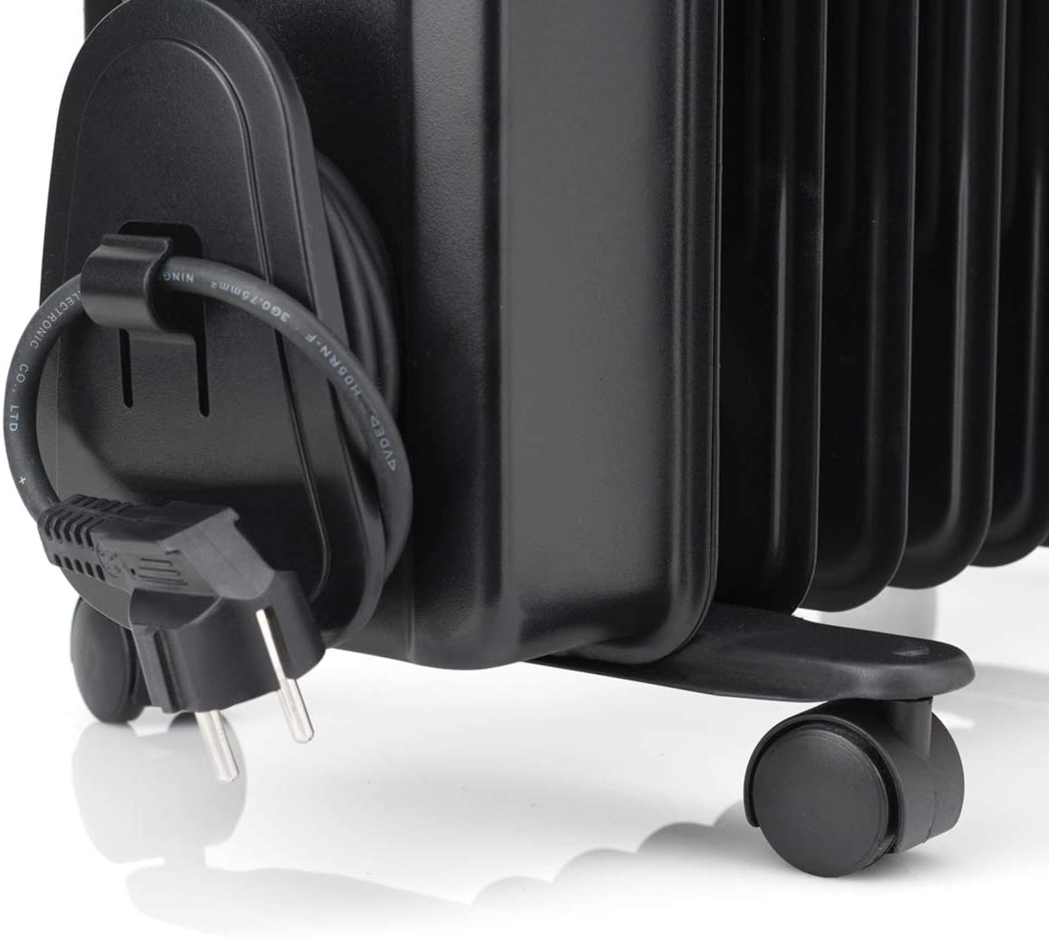 Električni radiator priznanega proizvajalca Black Decker BXRA2300E se ponaša z visoko toplotno močjo in 11 grelnimi elementi – rebri po 140 mm. Prostor lahko ogrevate na potrebe po ogrevanju z nastavljim termostatom, ki omogoča dve stopnji moči. Naprava je zavarovana zahvaljujoč funkciji samodejnega izklopa v primeru pregrevanja. Radiator oblikuje elegantna zasnova in črna barva, ki je posebno toplotno odporna. Lastnosti: – Moč:2300 W – Napetost:240 V – Dimenzije (DxŠxG):57 55.8 16.4 cm – Barva:Črna