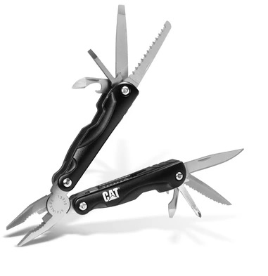 Opis: Ostro, večnamensko orodje z vsestranskimi koristmi. Črno eloksirano aluminijasta površina – večnamenska rešitev za različno delo, hobije, delo na prostem ali avtomobilsko industrijo. Trinajst uporabnih orodij je shranjenih v lahkem aluminijastem ohišju. Ta orodja iz nerjavečega jekla je odporno proti koroziji, nastavljivi vijaki pa vam omogočajo, da privijete vse, kar je potrebno. Ročaji se zložijo za kompaktno shranjevanje med uporabo. To 13-funkcijsko večnamensko orodje CAT ima klešče z dolgim nosom, rezalnik žic, odpirač za steklenice, izvijač za velike / srednje / majhne reže, velik nož, ki ga je mogoče zakleniti, datoteko z enim rezom, datoteko z dvojnim rezom, odpirač za konzerve, zaklepljivo nazobčano nož in velik nož.
