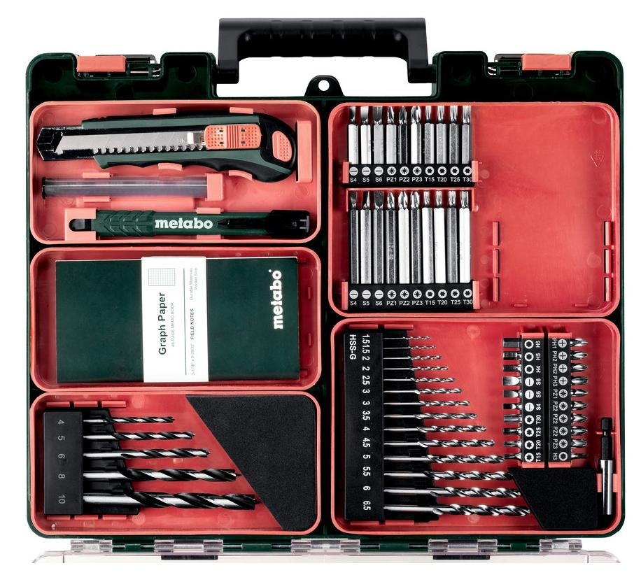 - Stroj s setom pribora: v plastičnem kovčku s setom pribora za vrtanje, vijačenje in še več