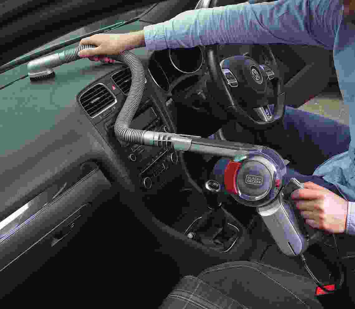 Avtomobilski sesalnik Black+Decker PV1200AV je ročni sesalnik z 12 V avtomobilskim priključkom. 5 m dolg kabel omogoča doseg celotnega avtomobila, vključno s prtljažnikom. Kabel se lahko enostavno ovije okrog ohišja. Obrnljiva glava omogoča enostavno čiščenje tudi težje dostopnih mest. Glava ima 10 položajev za največjo fleksibilnost pri čiščenju težko dostopnih mest, kot je na primer prostor pod sedeži ali vmes. Ciklonski način filtriranja odstranjuje umazanijo s filtra za zagotavljanje optimalne moči sesanja. V opremi je vgrajen ozek nastavek, krtača, zložljiva krtača, fleksibilna cev, adapter za nastavke. Lastnosti: – napetost: 12 V – čas delovanja: 30 min – moč: 12,5 AW – moč sesanja: 360 mm/H2O – posoda za prah: 440 mL – pretok zraka: 1060 L/min